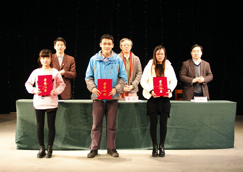 在主席台就座的领导分别为获得国家级奖励、省级奖励的学生代表和优秀指导教师颁奖。