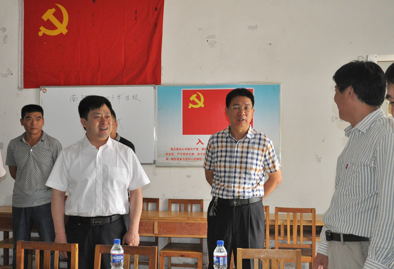 戚万学听取了三位第一书记的工作汇报后,对他们在短短七个月的时间里所取得的工作成绩给予充分肯定,对县委县政府、镇委镇政府对第一书记生活、工作上的关心照顾表示感谢。他指出,三位第一书记在县委县政府、镇委镇政府和各村两委的大力支持下,迅速摸清了村情民意,以抓党建为基础,制定了符合各村实际的工作计划和方案,选准了扶贫项目,并在短期内见到了实际效益,得到了老百姓的信任和拥护,真正发挥了第一书记的作用。他表示,学校会一如既往地支持第一书记工作,尤其是充分发挥学校的智力优势,尽快帮助村民脱贫致富。