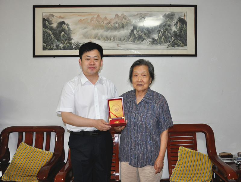 在纪念抗日战争胜利70周年之际,党委书记荆兆勋、校长戚万学、副校长张洪海、纪委书记郭辰夫9月1日上午看望慰问了王英斋、孟蒙、张明仁、麻文荣等抗战时期参加革命工作的老同志,为他们送去由中共中央、国务院、中央军委颁发的“中国人民抗日战争胜利70周年纪念章”,并为他们送上慰问金,向他们表示亲切的问候和崇高的敬意。学校办公室、人事处、离退休工作处负责人等一同前去慰问。