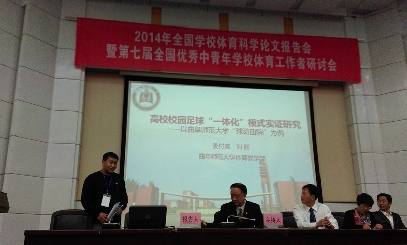 11月7-9日,由中国体育科学学会学校体育分会主办的2014年全国学校体育科学论文报告会暨第七届全国优秀中青年学校体育工作者研讨会在武汉体育学院举办,我校体育教学部教师姜付高、刘刚提交的《高校校园足球“一体化”模式实证研究---以亚搏集团官网(中国)官方网站“球动曲院”为例》一文受邀做大会专题报告。报告以我校校园足球发展为例证,用先进的体育理念、生动的图片、翔实的数据、丰富的信息诠释了我校校园足球的发展理念、发展现况和发展模式,为切实推动高校校园体育活动,提供理论支持和实践指导。报告受到参会者的认可,获得论文一等奖。