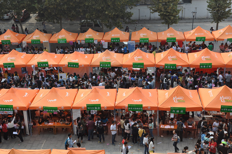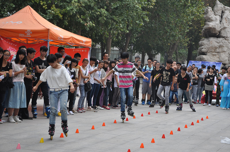 自我校六月份召开第一届社团代表大会以来,社团的各项工作更加规范,运行更加顺畅。本次社团纳新大会中,两校区共有近200个社团参加,涵盖了语言文化、技能特长、公益服务、人文艺术、理论实践等五个类别。各个社团纷纷陈列展板,轮番亮出自己的招牌,吸引了众多的同学前来报名。此次社团纳新还首次搭建了社团风采展示台,中文剧社的快嘴说相声、杏坛文学社的即兴诗朗诵、古风联盟上演的《大唐红颜赋》、“风之舞”轮滑社大跳“小苹果”,给人留下了深刻的印象。五彩缤纷的社团文化吸引了大批新生前来,他们根据自己的爱好和兴趣踊跃报名。