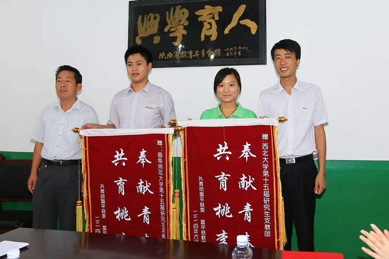 在陕西团省委、渭南市市委和富平县相关领导的陪同下,联合调研组来到了富平县留古初中,看望了我校研究生支教团成员,对门超元、陈卫卫、吴喆、王昭伟和刘怡5名支教团志愿者的工作和生活作了详细的了解,并展开座谈。座谈会上,调研组详细了解了志愿者的学习工作以及志愿者补助发放等情况。我校支教团成员们分别向调研组汇报了各自的服务工作情况,并对改进西部计划研究生支教团工作提出了建议。随后,团县委、县教育局向我校研究生支教团队伍赠送锦旗和生活慰问品。