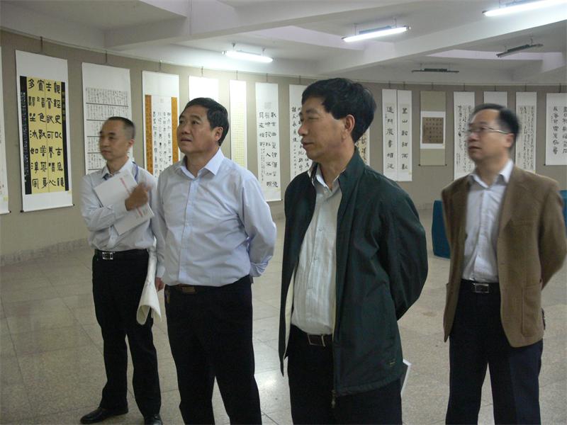 开展期间,党委书记荆兆勋、副校长马东骅到书法学院书画馆观看了书法作品展览。