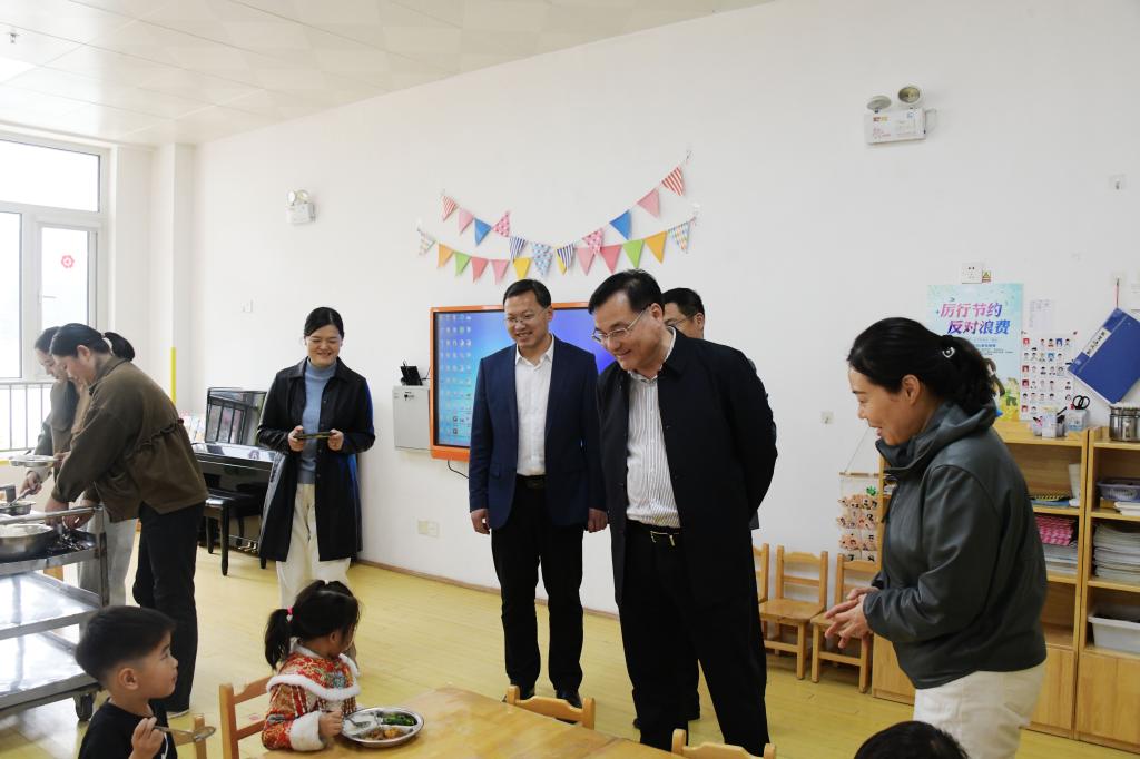 陈刚重点查看了学三餐厅、学二餐厅二楼及幼儿园食堂,对食材的存储、切配、炒制、售卖等重点环节及重点场所进行检查,并查看了相关工作台账资料及信息公示情况。