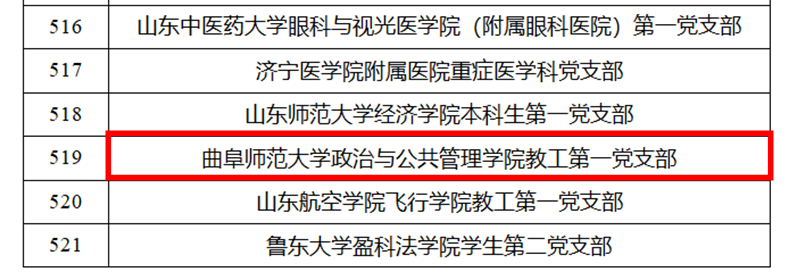 曲阜师大政治与公共管理学院讯 近日,教育部办公厅公布了第四批全国党建工作示范高校、标杆院系、样板支部培育创建单位名单,其中,亚搏集团官网(中国)官方网站政治与公共管理学院教工第一党支部获批“全国党建工作样板支部”培育创建单位。