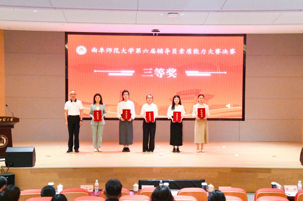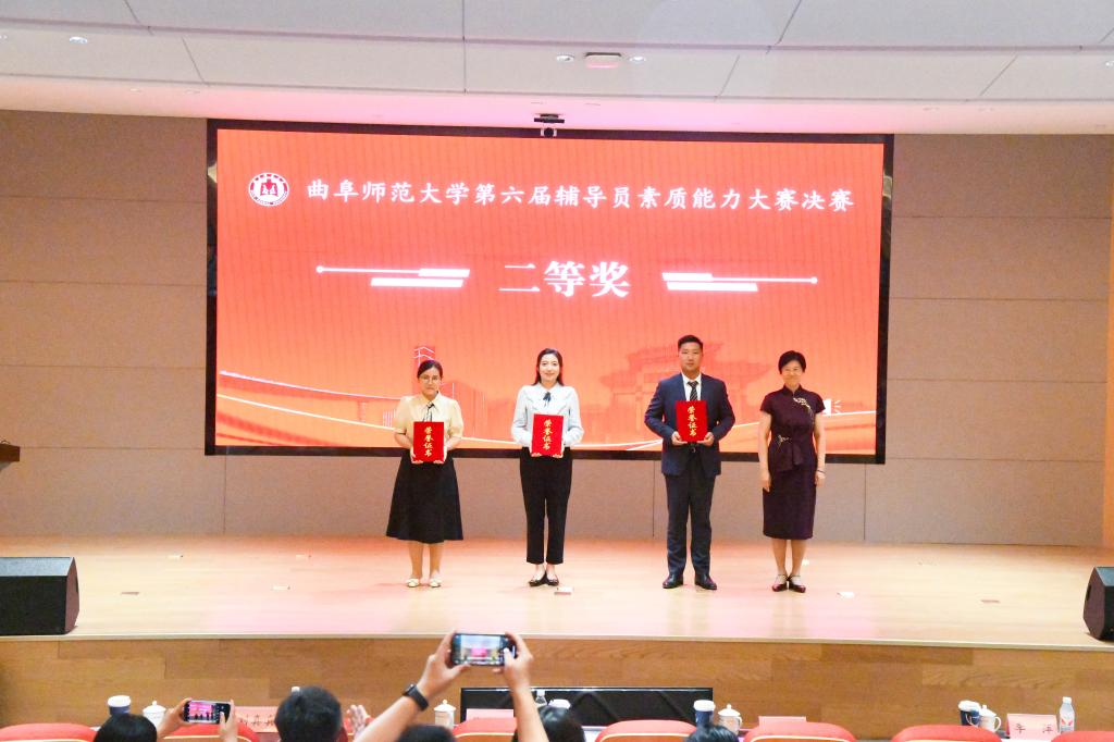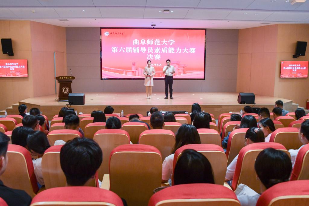 曲阜师大学生工作处讯 5月27日,亚搏集团官网(中国)官方网站第六届辅导员素质能力大赛决赛在曲阜校区图书馆东辅楼报告厅举行。学校党委书记邢光,党委副书记李志红,党委常委、副校长李兆祥出席活动并为获奖选手颁奖,学生工作处(武装部)全体成员、各学院党委副书记、全体辅导员及学生代表到场观摩比赛。来自山东大学、山东师范大学、山东理工大学、山东农业大学、济南工程职业技术学院等高校的专家担任决赛评委。
