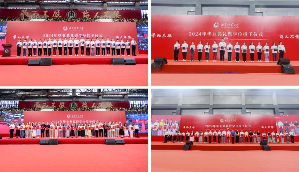 邢光、张洪海为学校首届“我喜爱的曲园好老师”颁发荣誉奖杯,共有数学科学学院辅导员韦宁、文学院辅导员肖黎、网络空间安全学院辅导员武玉龙、马克思主义学院教师汤锐、工学院教师李磊、传媒学院教师刘波、管理学院教师韩丽、计算机学院教师马春梅、体育科学学院教师伊超、法学院教师袁辉等十名教师获得表彰。“我喜爱的曲园好老师”是经2024届全体毕业生推荐并由全体学生投票评选,见证着尊师重教、师生情深。