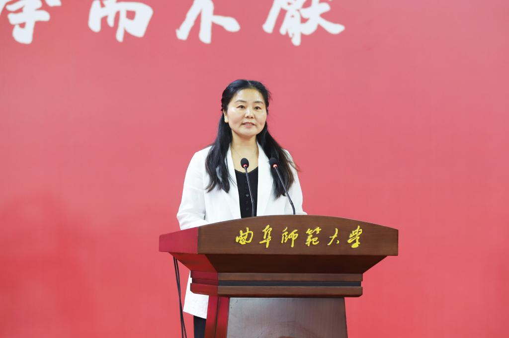 “孩子在这里学习,我们是一万个放心。”典礼上,网络空间安全学院2024届毕业生吴天钰同学的母亲王双女士作为家长代表发言,感谢学校为孩子创造了良好的成长环境,感谢老师们以严谨的教学态度、真挚的关心关怀与孩子们一起度过了四年美好而难忘的时光。她说,大学四年里,孩子学会了如何面对挑战、如何与人合作、如何在挫折中成长,真正从青涩少年成长为思想独立、敢于拼搏的新时代青年。从这里启航的每一个孩子,都不会忘记曲阜师大教给他们的为学、为人、为事的道理。
