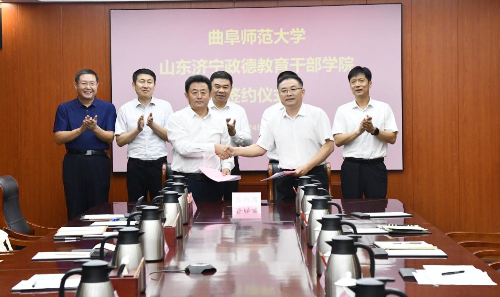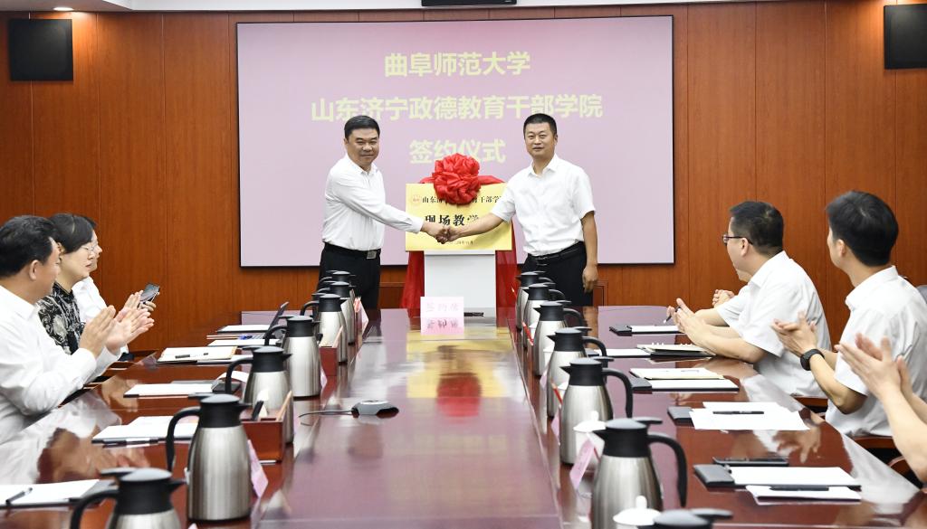 曲阜师大国内合作处讯 6月19日下午,亚搏集团官网(中国)官方网站与山东济宁政德教育干部学院合作协议签约暨现场教学点揭牌仪式举行。山东济宁政德教育干部学院党委书记陈冲,党委副书记、院长白占德,党委委员、副院长王宏伟,曲阜师大党委书记邢光,党委常委、副校长纪洪涛等出席活动。