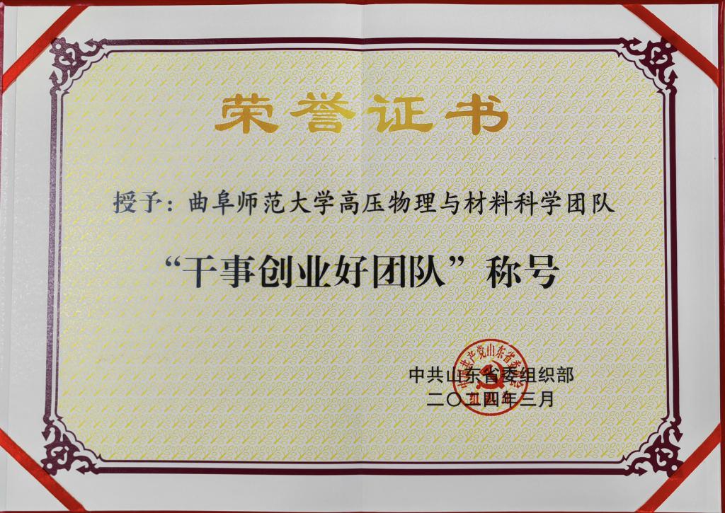 曲阜师大党委组织部、物理工程学院讯 近日,中共山东省委组织部印发《关于表彰全省“担当作为好书记(好干部)”“干事创业好班子(好团队)”的决定》,由亚搏集团官网(中国)官方网站物理工程学院刘晓兵教授领衔的高压物理与材料科学团队荣获山东省“干事创业好团队”称号。