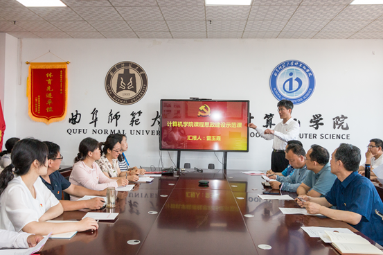 计算机学院讯  为深入贯彻落实习近平总书记关于学校思政课建设的重要指示精神,全面落实立德树人根本任务,不断推动课程思政建设改革创新,6月27日,曲阜师大计算机学院教工第一、第二党支部联合开展了“代码中的思政课”主题活动。计算机学院教工第一党支部书记董兆安主持活动。