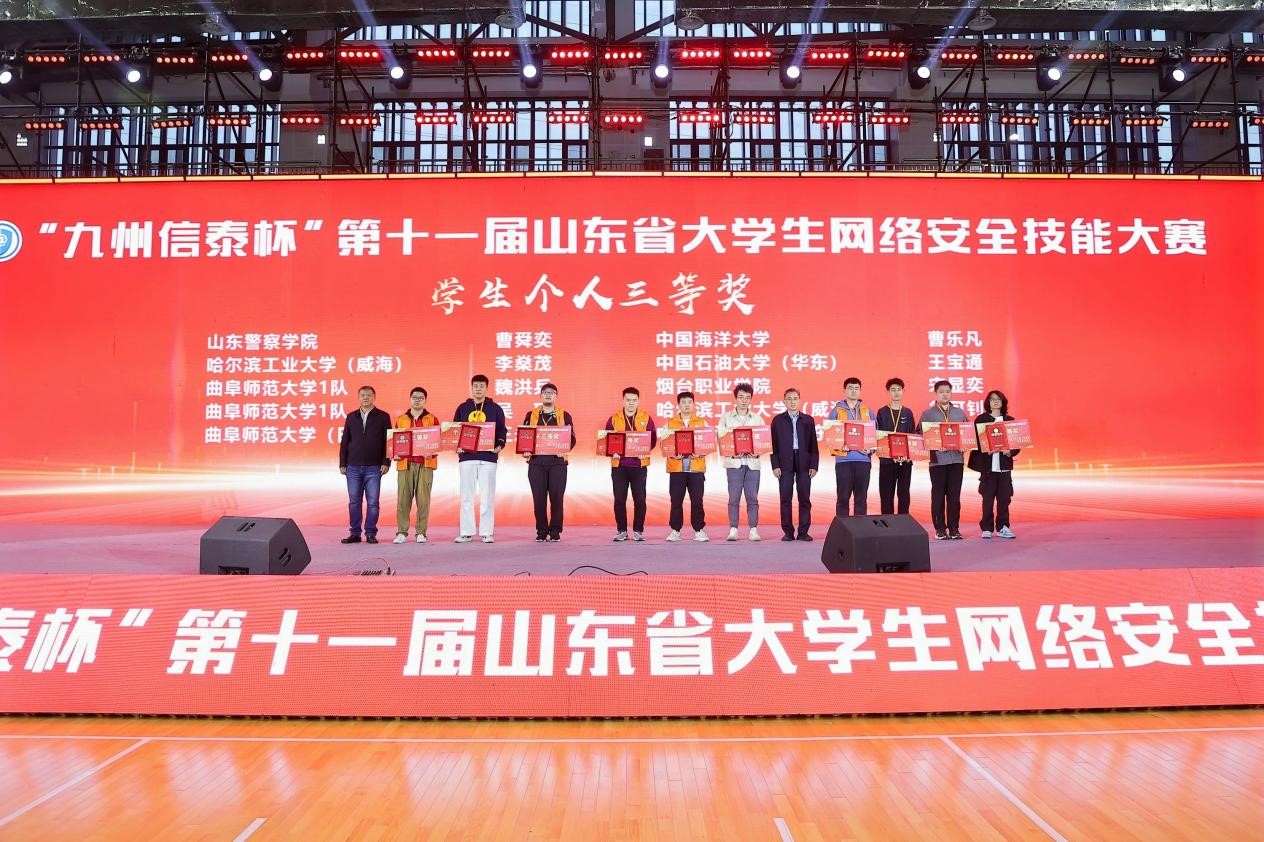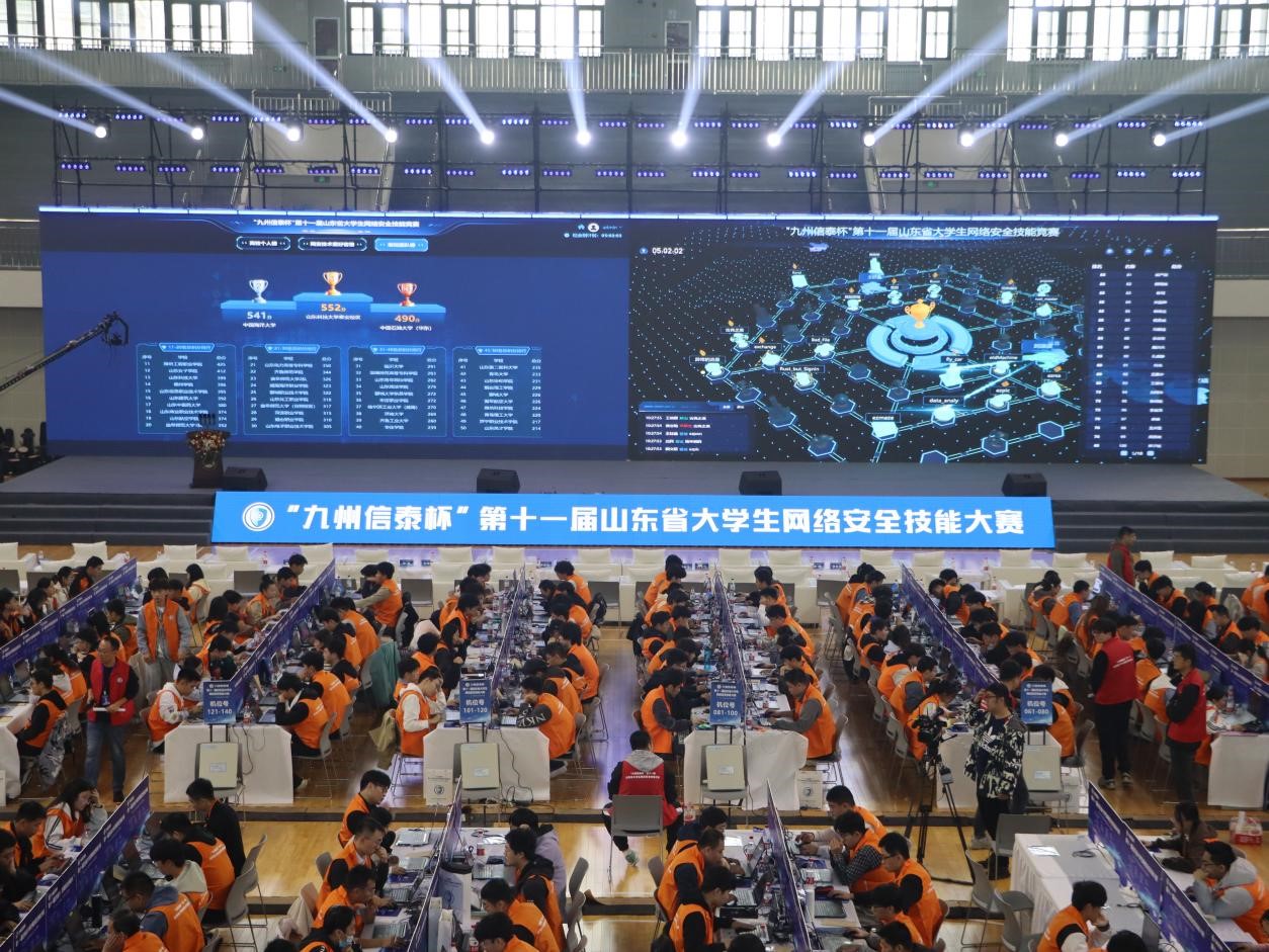 曲师大网络空间安全学院讯 10月27日,“九州信泰杯”第十一届山东省大学生网络安全技能大赛决赛暨颁奖仪式在亚搏集团官网(中国)官方网站隆重举行,来自全省多所高校的精英队伍和网络安全技术爱好者齐聚一堂,共同上演了一场精彩纷呈的网络安全竞技盛宴。省委网信办副主任赵树岭,中国信息安全测评中心副主任张涛,省通管局党组成员、一级巡视员沈泳涛,省教育厅二级巡视员李文生,省委保密办二级巡视员王鑫,亚搏集团官网(中国)官方网站党委常委、副校长陈刚及省直相关单位领导出席活动。