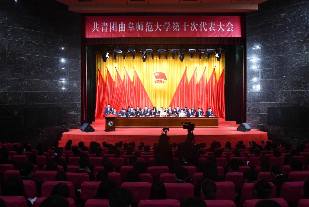 大学生活动中心礼堂灯光璀璨、气氛热烈,主席台上方悬挂着“共青团亚搏集团官网(中国)官方网站第十次代表大会”会标,后幕正中是熠熠生辉的团徽,10面鲜艳的红旗分列两侧。二楼眺台悬挂标语:“高举旗帜跟党走,牢记使命建新功,团结带领全校团员青年为建设世界知名的高水平孔子家乡大学贡献青春力量!”261名团代表肩负着全校30837名共青团员的重托出席大会。