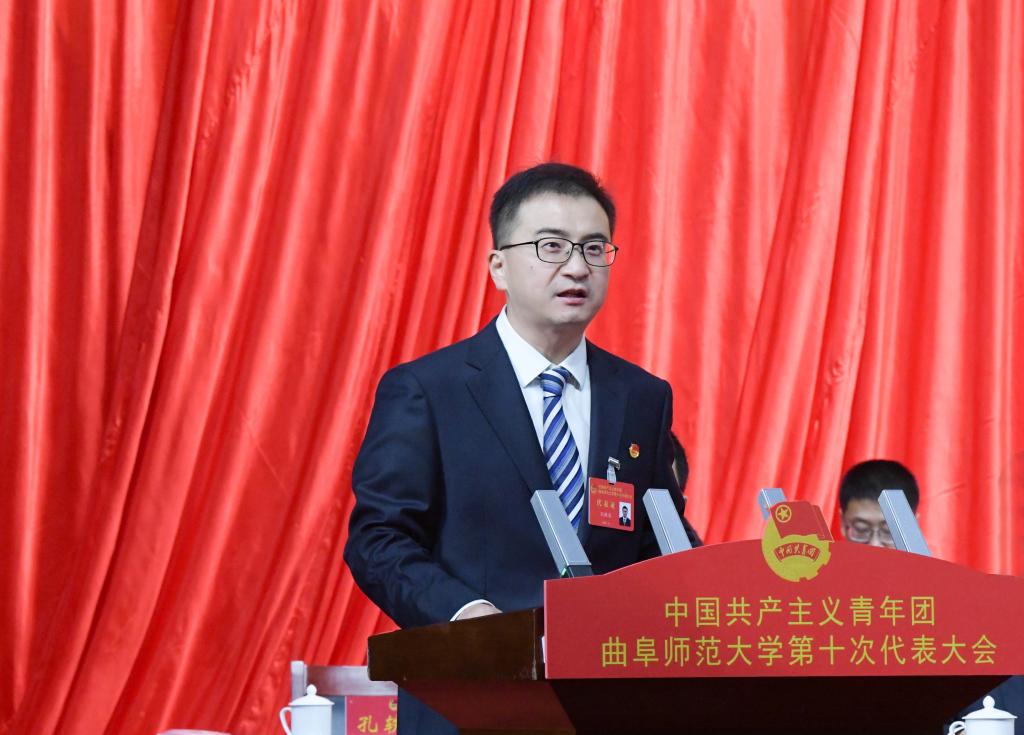 学校团委书记孔轶众代表共青团亚搏集团官网(中国)官方网站第九届委员会向大会作题为《高举旗帜跟党走,牢记使命建新功——团结带领广大团员青年为建设世界知名的高水平孔子家乡大学贡献青春力量》的工作报告,回顾了学校第九次团代会以来共青团的工作,分析了新时代共青团工作面临的新形势新任务,明确提出了今后五年学校共青团工作的总体思路和主要任务。