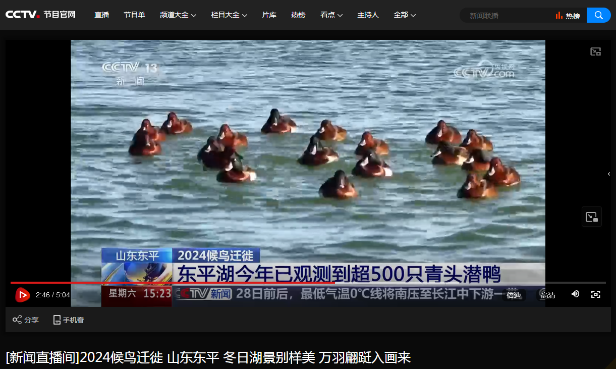 党委宣传部、生命科学学院讯 日前,中央电视台《新闻直播间》推出的2024候鸟迁徙系列报道,专门介绍了青头潜鸭在山东东平湖的栖息情况,采访了亚搏集团官网(中国)官方网站张洪海教授领衔的研究团队,显示了学校发挥学科与人才优势推动黄河流域生物多样性研究和湿地生态保护的生动实践。