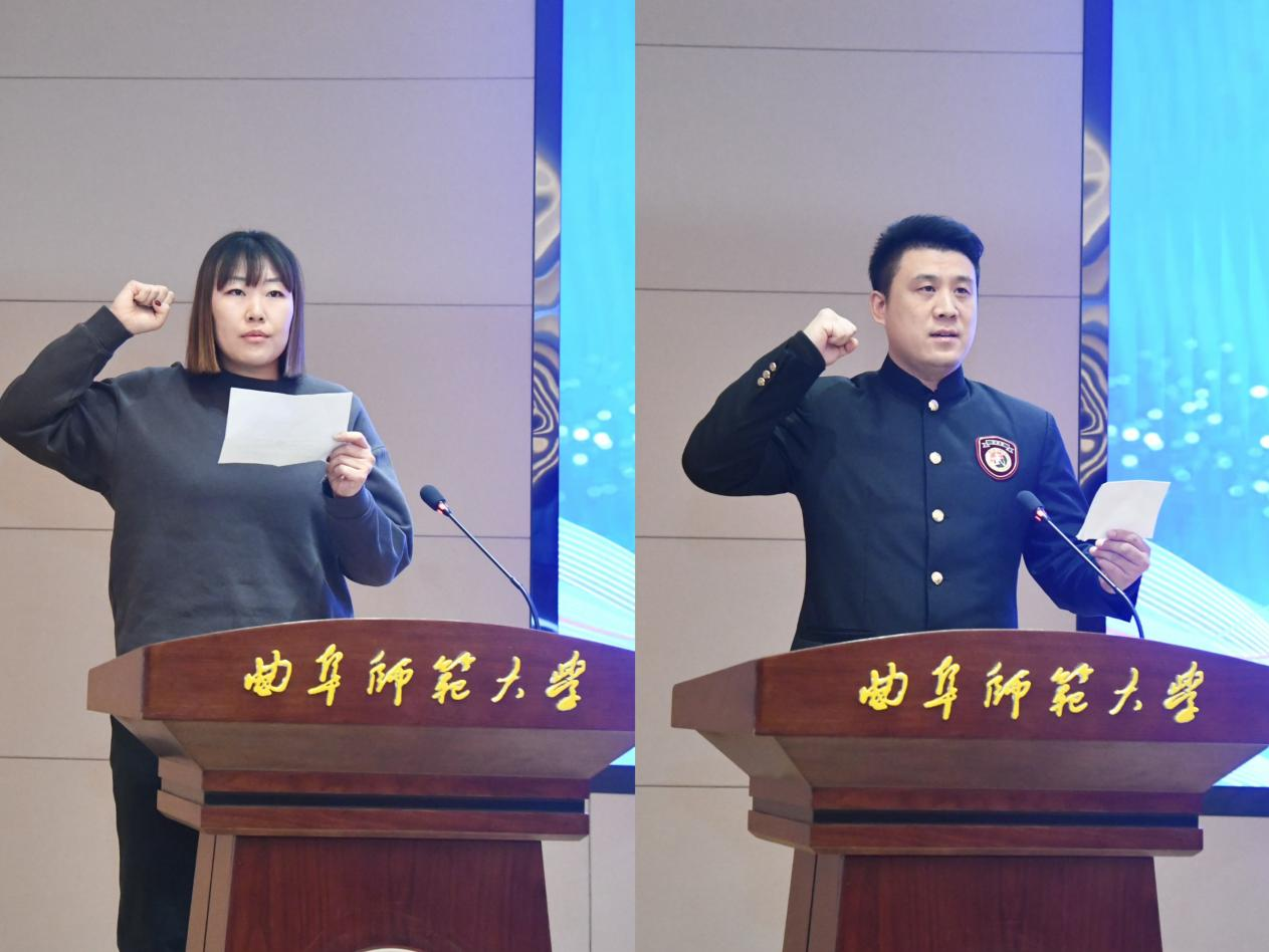 开幕式由体育学部主任兼体育科学学院院长、公共体育教学部主任姜付高主持。烟台工程职业技术学院教师周榕代表全体参赛教师宣誓;亚搏集团官网(中国)官方网站体育科学学院武术教研室主任、山东省第五届高校体育教师基本功大赛武术项目总裁判长樊腾飞代表全体裁判员宣誓。