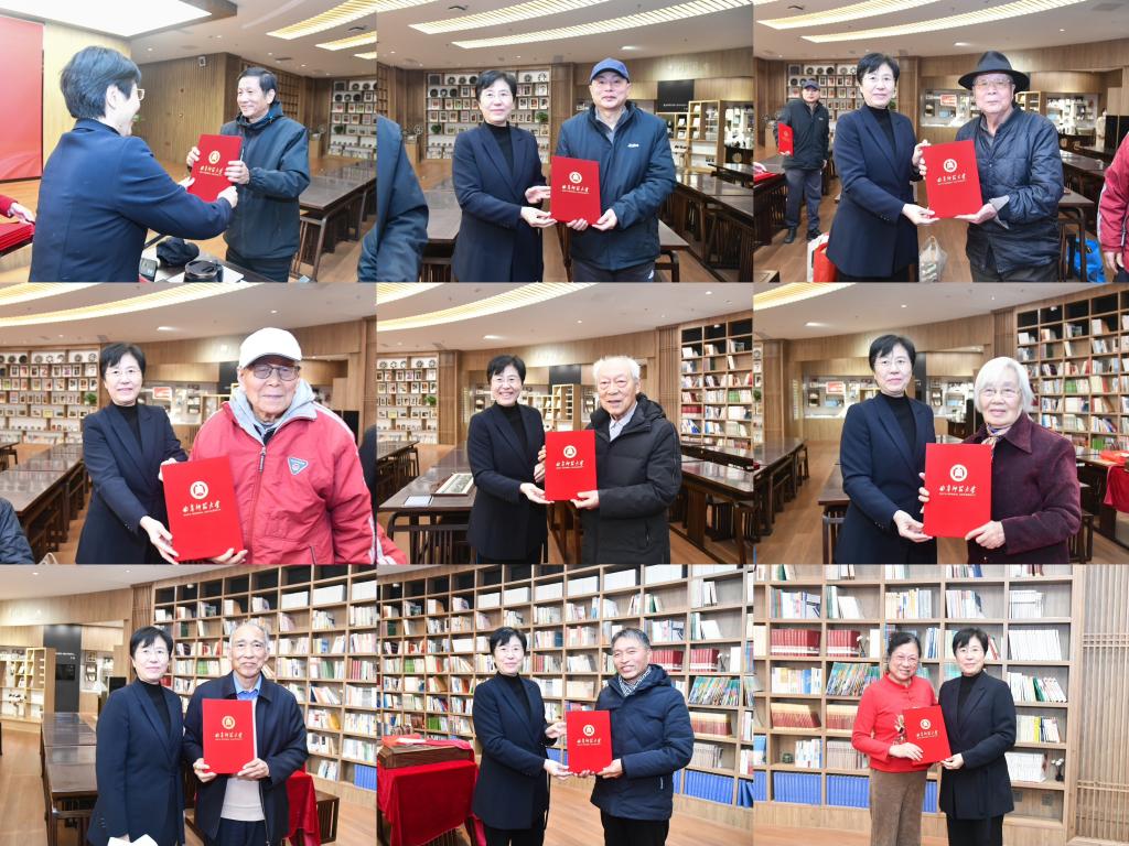仪式上,李志红为老教师颁发捐赠证书。本次活动,张顺清、潘传增、张志静、赵跃明、陈清平、经济民、瞿鸣恺、侯子艾8位上世纪五十年代参加工作的老教师及胡劲松、陆彦忠2位教师共捐赠教材、教案、教具、照片及各类荣誉证书110余件老教师们依次展示捐赠物品并深情讲述了其背后的故事这一件件宝贵的藏品既是曲师设学兴教的历史见证,又承载着师者对学校的深情厚谊