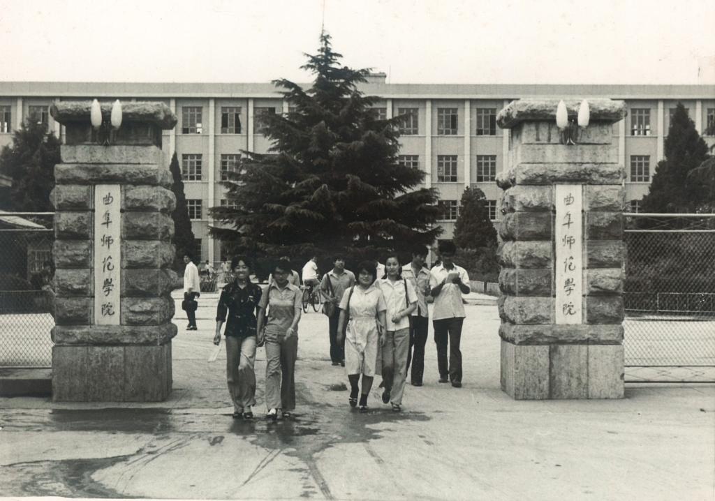 1978年我们学校的校门只有南门和北门。南门是1956年建成的,为三进四柱式,石砌方柱,木制大门,两边是收发和门卫,简洁实用。校牌是时任山东省委第一书记、著名书法家舒同所写,“曲阜师范学院”六个大字宽博端庄,圆劲婉通,一直伴随了我们近30年。这种字体后来成为流行的所谓“舒体”。这个老校门在今天的科技实验大楼位置,南面东半部是独立成院的附属中学,西面则是大片农田。南面围墙原来是铁丝网,每到集市日,附近农民隔网与教职工进行蔬菜鸡蛋等的交易,熙熙攘攘,好不热闹。后来铁丝网改成了砖墙,南门东侧建了商店、邮局、银行等设施,集市就在路边进行。当时南门外有一条自东向西的小溪,石桥流水,绿树成荫,春天小鱼游动,夏天群蛙鸣叫;秋天落叶纷纷,冬天冰面晶莹。有东北籍的教师技痒难耐,清除溪中冰面的杂物后,开始溜冰,令人大开眼界。这种南绕玉带的风水恰与故宫前的金水桥暗合,不知是否天意?可惜后来因为淤塞污染将之覆盖填平。南门外一条沙土路(后铺设沥青)直通国道,东来西去的车辆行人只能遥观掩映在树丛中的校门。北门在今天的北苑餐厅一带,门外是大片的农田,一般闭而不开。北门东侧是北操场,西侧是机械厂,东北角是木工厂,西北角是化粪场。1985年我校更名“亚搏集团官网(中国)官方网站”,在靠近327国道建造了今天的校南门。新校门为三间四柱三楼飞檐琉璃牌坊式结构,两边配以阙房,以雄健大气的毛体为匾额,白昼古朴庄重,夜晚流光溢彩。新校门靠近国道,目标明显,无形中做了广告,扩大了影响。八十年代末期,学校在校区西南征得土地,附中西迁,建立东便门以出入,西墙封闭。此时老南门结束了其历史使命,不久后被拆除。