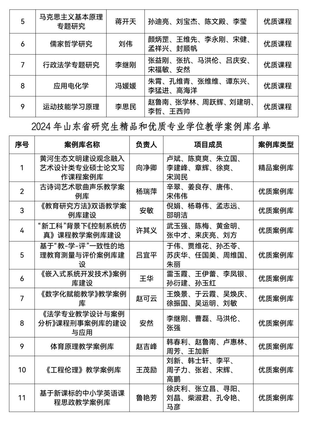 研究生处讯 近日,山东省教育厅公布了2024年研究生教育教学资源建设相关项目评审结果,曲阜师大共有73项获奖,其中教育教学成果培育项目1项、教育教学改革研究项目5项、优质课程9项、精品和优质专业学位教学案例库11项、优秀博士、硕士学位论文23项、创新成果24项,涵盖了研究生培养模式改革与创新、专业学位研究生培养、课程建设、研究生教育教学管理改革和研究生思想政治教育等类别。