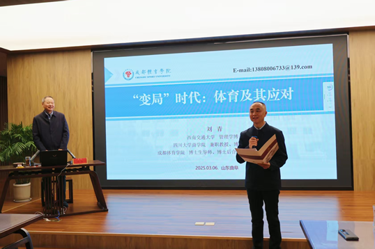 体育科学学院讯 3月6日,成都体育学院原党委书记、校长刘青教授应邀做客亚搏集团官网(中国)官方网站体育科学学院举办的“杏坛体育大讲堂”,以《“变局”时代:体育及其应对》为题作了精彩讲座。亚搏集团官网(中国)官方网站党委常委、副校长李兆祥主持讲座,体育科学学院全体教师、研究生参加了此次活动。