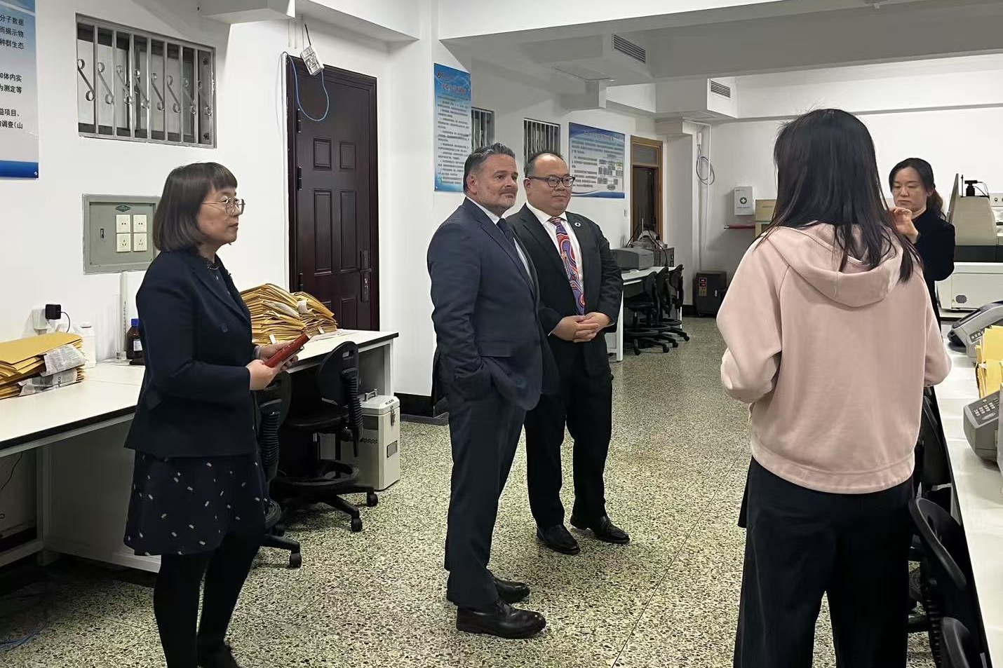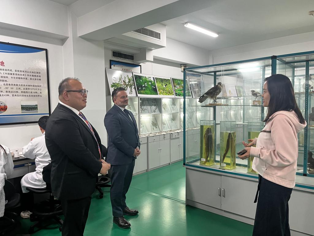 座谈结束后,Yik Teo部长一行参观了学校南四湖生物标本室、化学实验室、高压物理与材料科学实验室。