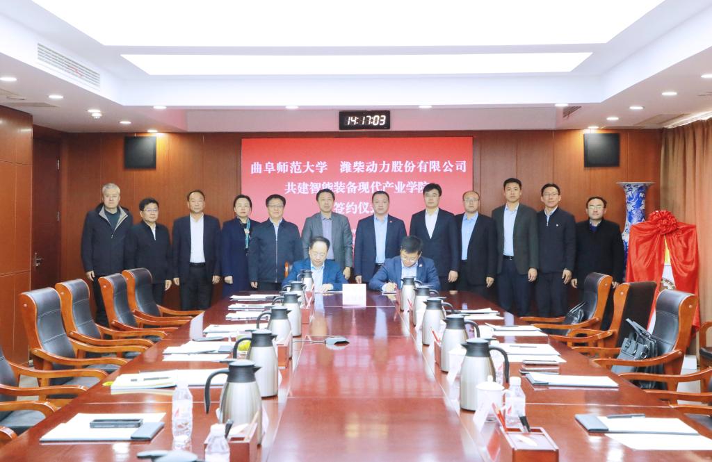 曲阜师大招生办公室讯 4月2日,亚搏集团官网(中国)官方网站与潍柴控股集团有限公司共建智能装备现代产业学院签约揭牌仪式举行。学校党委副书记、校长张洪海,党委常委、副校长胡凡刚,潍柴控股集团有限公司党委副书记黄维彪出席仪式。胡凡刚主持仪式。