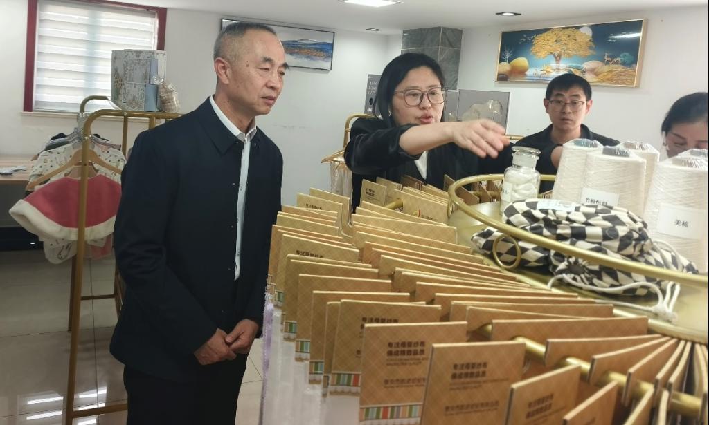 会后,李兆祥一行实地查看了企业生产原材料以及部分出口世界各地的精美纺织品样品