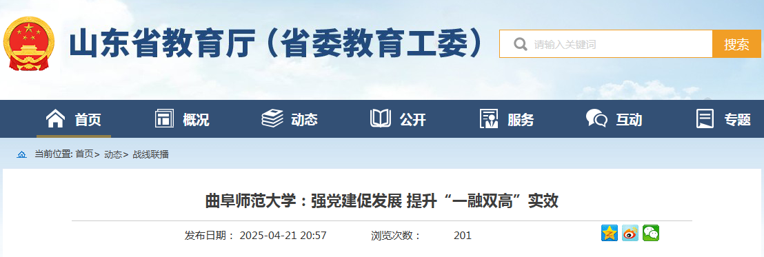 4月21日,山东省教育厅官方网站以《亚搏集团官网(中国)官方网站:强党建促发展 提升“一融双高”实效》为题,报道了学校推进党建与业务工作深度融合,以高质量党建引领学校事业高质量发展,从提升理论武装、强化组织建设、担当办学职责、完善评价机制等方面助推“一融双高”的经验做法。