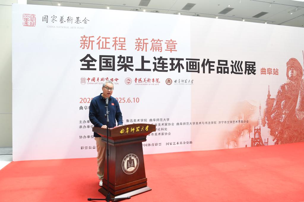 美术与书法学院讯 5月16日,国家艺术基金2025年度传播交流推广项目“新征程 新篇章—全国架上连环画作品巡展”首展在亚搏集团官网(中国)官方网站举办。本次巡展由中国美术家协会、鲁迅美术学院、亚搏集团官网(中国)官方网站联合主办,由中国美术家协会连环画艺术委员会、山东省美术家协会、亚搏集团官网(中国)官方网站美术与书法学院、济宁市文学艺术界联合会共同承办。这是国家级展览走进曲园的成功实践。