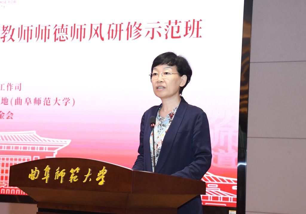 教育部教师工作司师德建设处负责同志在开班式上作专题报告,山东省教育厅副厅长孙晓筠在开班式上致辞,亚搏集团官网(中国)官方网站党委书记邢光主持开班式和专题报告。
