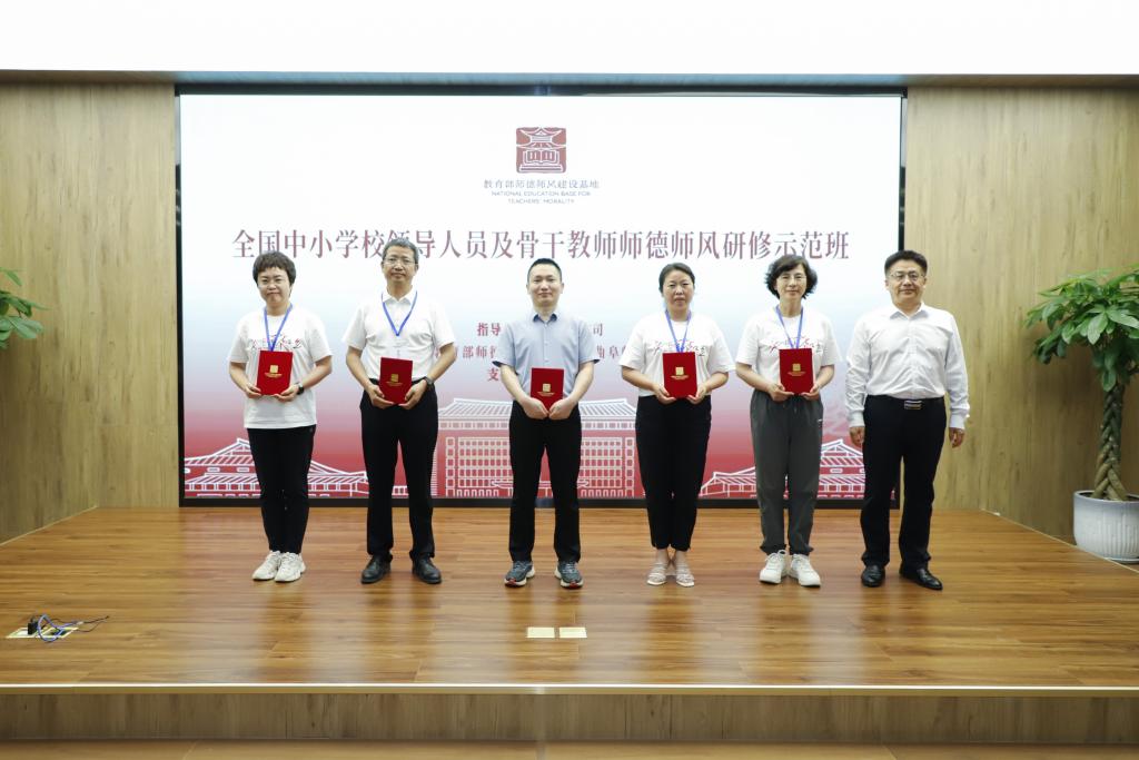 山东省教育厅教师工作处处长邵学伦、教师工作处副处长刘依林,亚搏集团官网(中国)官方网站党委常委、副校长胡凡刚,党委常委、副校长陈刚,党委常委、宣传部部长、教育部师德师风建设基地(亚搏集团官网(中国)官方网站)办公室主任孙祥广出席开班式。胡凡刚在结业式上为学员颁发研修证书。