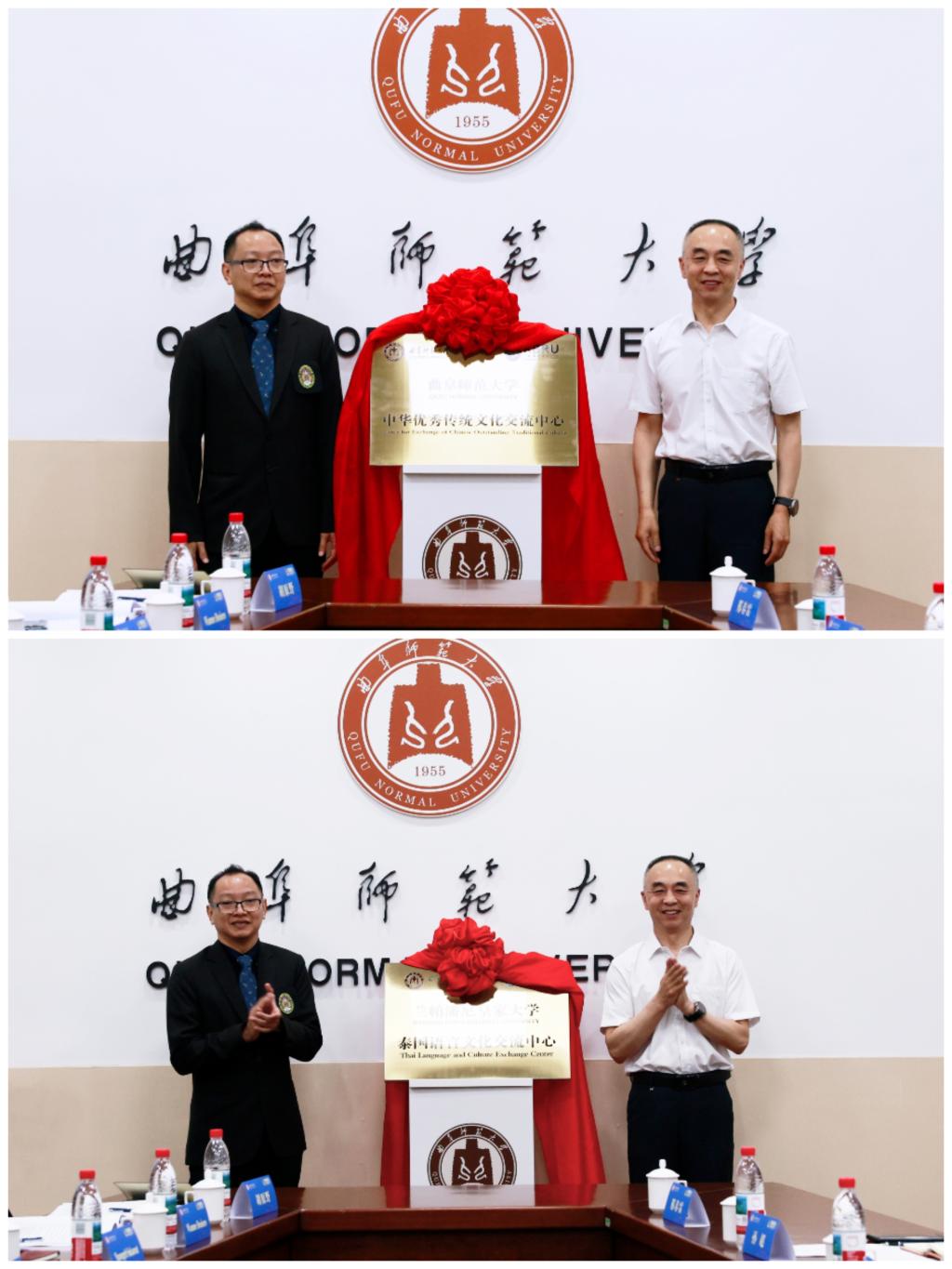 李兆祥和Sinat Koslanant共同为在亚搏集团官网(中国)官方网站设立的泰国语言文化交流中心,以及在兰帕潘尼皇家大学设立的中华传统文化中心揭牌。