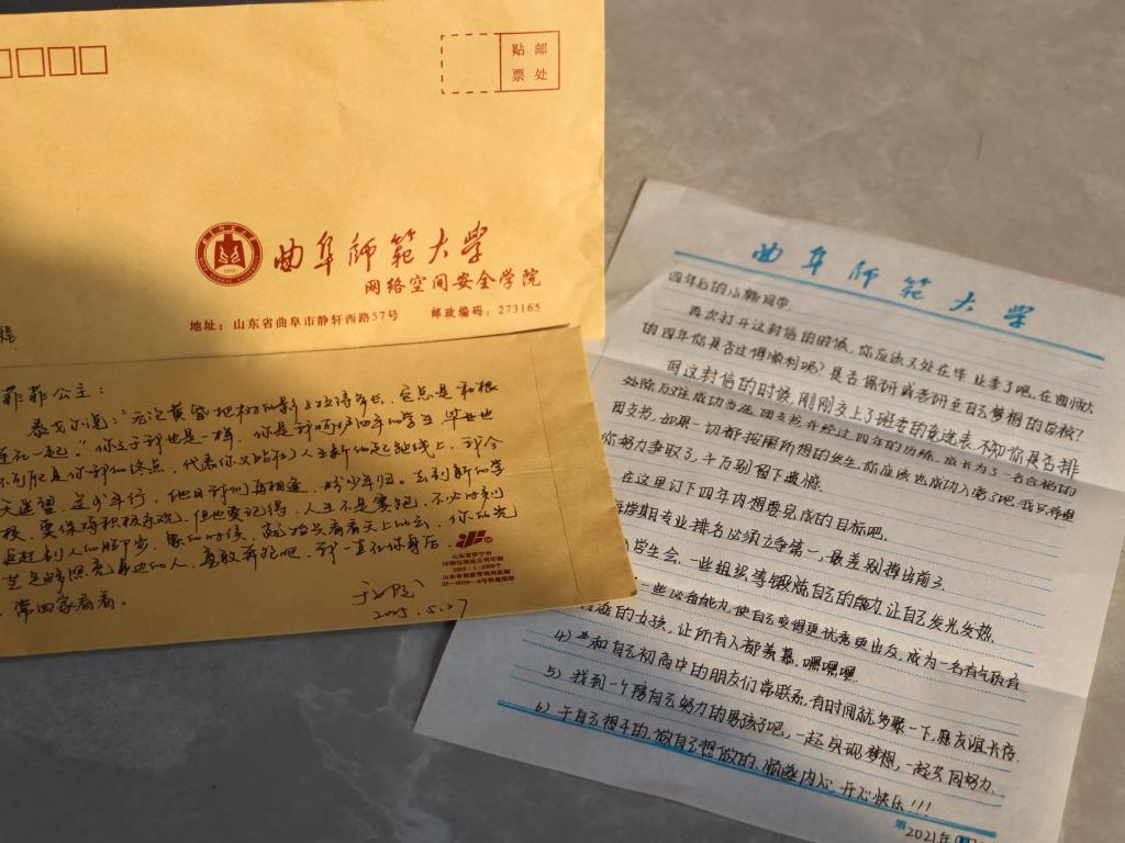 “我保存的这388封信件,是同学们在2021年9月26日大学第一次班会上写给四年后的自己的,我和同学们约定毕业时再打开这封来自十八岁的信件。”当毕业骊歌响起、四年之约来临,亚搏集团官网(中国)官方网站网络空间安全学院辅导员于媚媛拿出保存完好的一封封信件,逐一给每封信写上一份毕业赠言。