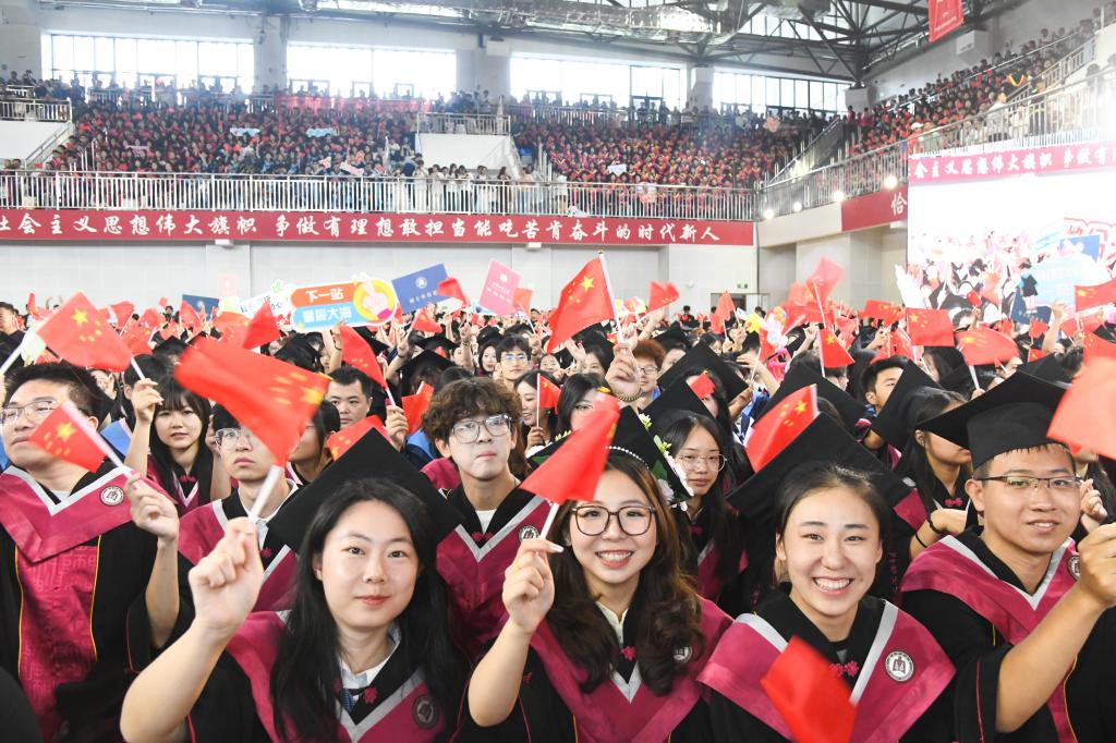 “到西部区、到基层去、到祖国最需要的地方去,请党放心、请祖国放心、请学校放心!”典礼上,亚搏集团官网(中国)官方网站2025届赴边疆、基层就业毕业生代表集体宣誓,大家身着印有“为中国起立”字样的T恤表达出将“小我”融入“大我”的坚定信念。