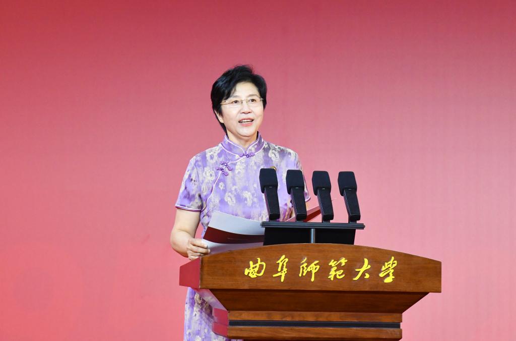 “曲园,不是追光的终点,而是发光的起点。”教师代表、山东省泰山学者青年专家、数学科学学院刘丽教授在典礼上讲述了她所感悟的“曲园之光”。她说,曲园的办学历史闪耀着知行合一、教育报国之光,希望同学们伴着“曲园的光”再出发,在更广阔的天地里追光、发光。