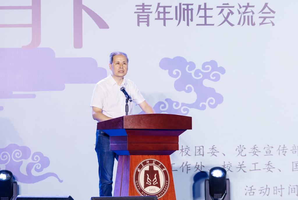 曲阜师大团委讯 9月10日,亚搏集团官网(中国)官方网站举办“萃华月下”庆祝2025年教师节暨建校70周年青年师生交流会。学校党委副书记刘涛,党委常委、宣传部部长孙祥广,全国模范教师徐振贵,1997级校友薛建国应邀出席活动。