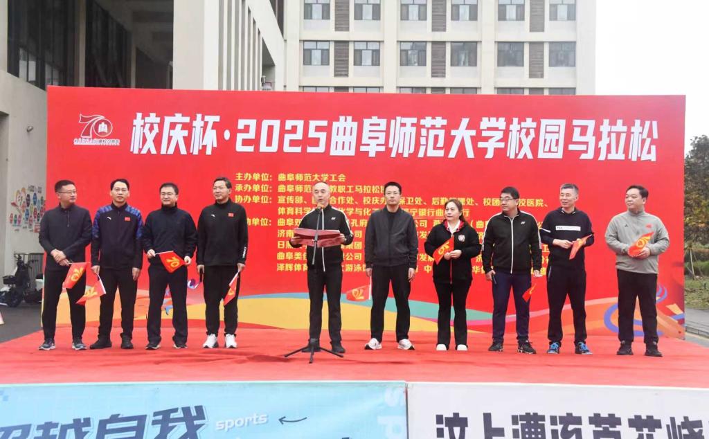 曲阜师大工会讯 10月12日,亚搏集团官网(中国)官方网站曲阜校区旌旗飘扬、人声鼎沸,“校庆杯”2025校园马拉松鸣枪开跑。学校党委常委、副校长李兆祥,党委常委、宣传部长孙祥广出席活动。