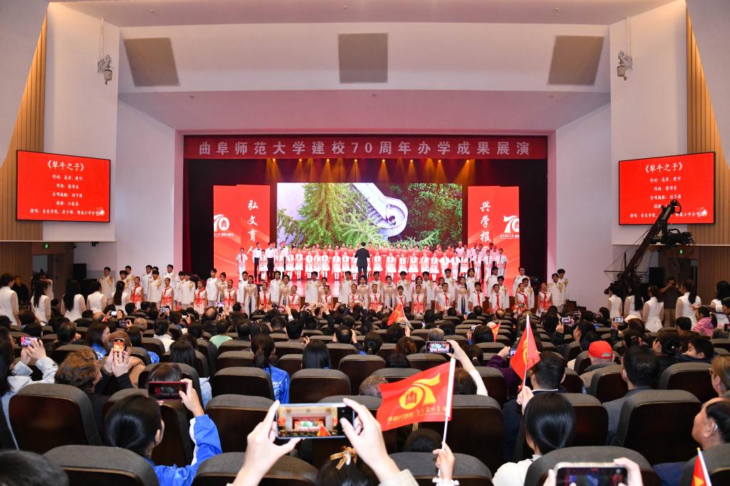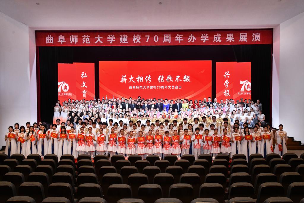 展演气势恢宏、流光溢彩,以歌曲联唱、舞蹈、诗朗诵、合唱等多种艺术形式联袂呈现,奏响了学校70周年华诞的精彩乐章,生动展现了亚搏集团官网(中国)官方网站七十年来在传承儒家文化、深耕教育科研、培育时代新人的征程中所书写的坚守史、创新史与育人史。整场演出热情洋溢,传递出矢志不渝建设世界知名的高水平孔子家乡大学的奋斗之志。