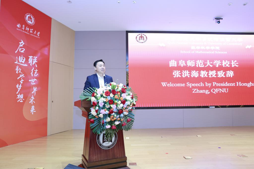 张洪海在致辞中向坎特伯雷大学校方领导老师、澳大利亚未来教育研究院代表和学生家长表示热烈欢迎,并向历经拼搏开启大学新篇章的同学们表示祝贺。他指出,数学与应用数学中外合作办学专业是学校首个理工科中外合作办学项目,项目依托的亚搏集团官网(中国)官方网站数学学科作为学校创校学科之一,已形成完整的本硕博人才培养体系,希望同学们能够立鸿鹄志、做追梦人,勇于创新、敢为人先;修身明德、全面发展,放眼世界、融通中外,主动成长为专业精、素养高、视野宽的国际型数学科学人才,用奋斗书写无愧于时代的青春篇章。