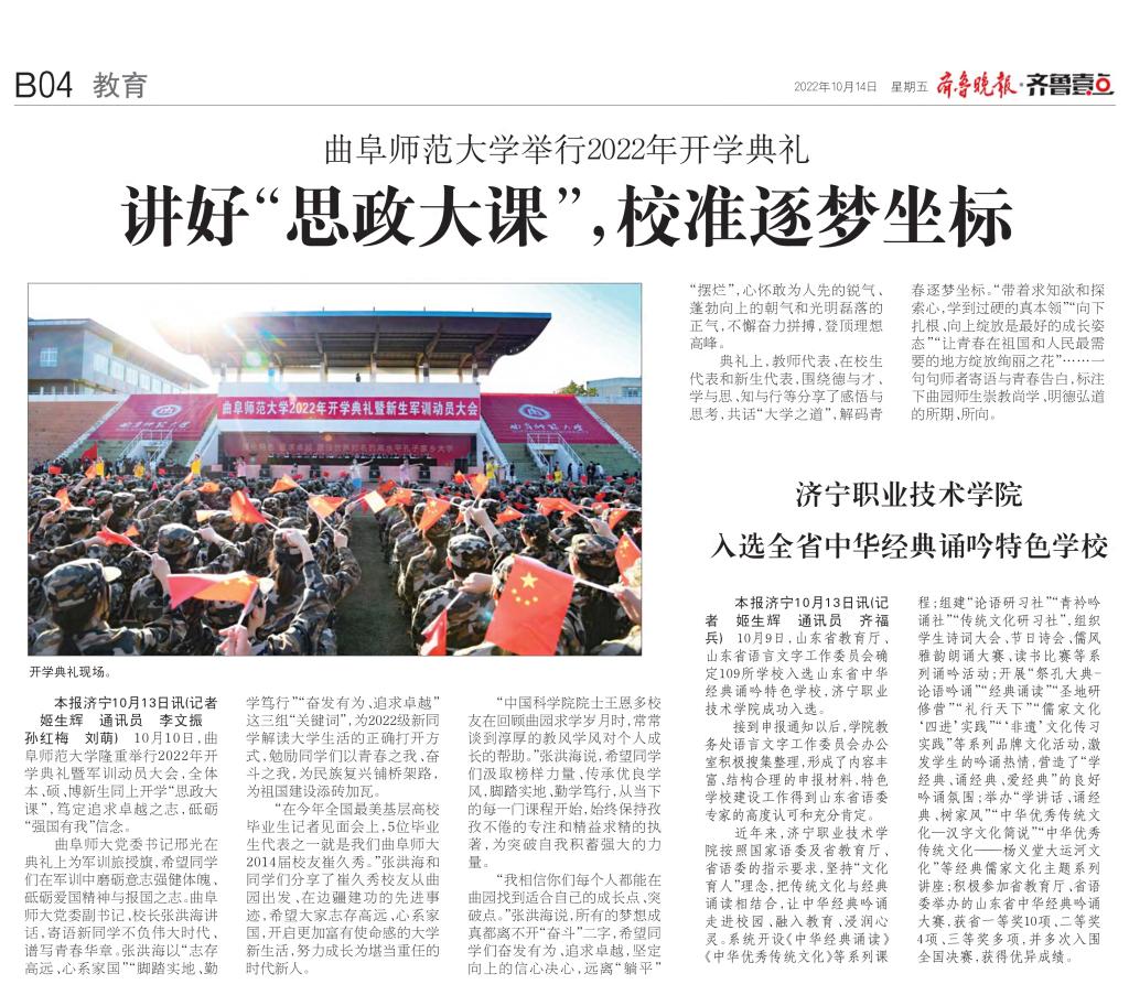【齐鲁晚报】亚搏集团官网(中国)官方网站开学典礼 讲好“思政大课”,校准逐梦坐标