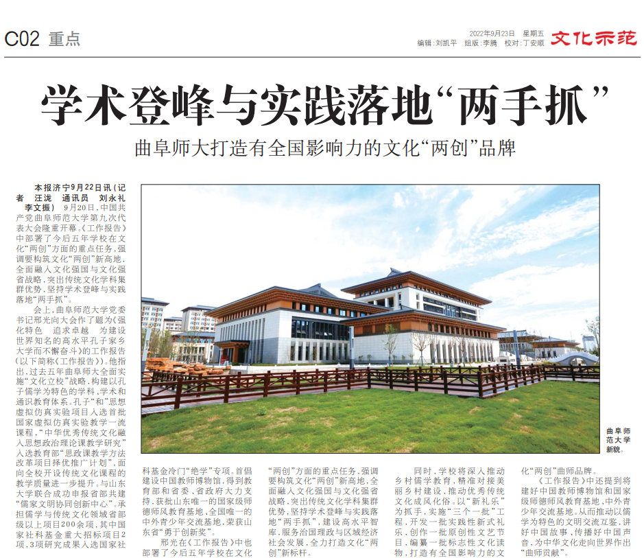 【齐鲁晚报】学术登峰与实践落地“两手抓”——曲阜师大打造有全国影响力的文化“两创”品牌