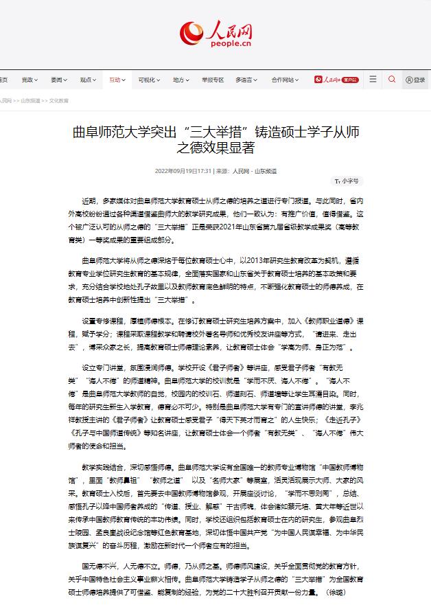 | · | 【中国青年报】亚搏集团官网(中国)官方网站把办好师范教育作为第一职责 扎根孔子故里培养新时代“大国良师” | 2022/10/28 |