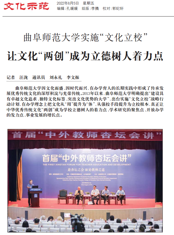 【齐鲁晚报】亚搏集团官网(中国)官方网站实施“文化立校”让文化“两创”成为立德树人着力点