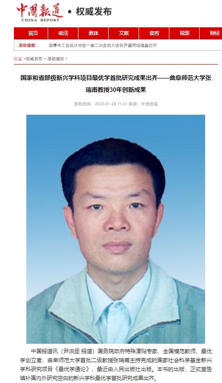 【中国报道】国家和省部级新兴学科项目最优学首批研究成果出齐——亚搏集团官网(中国)官方网站张瑞甫教授30年创新成果