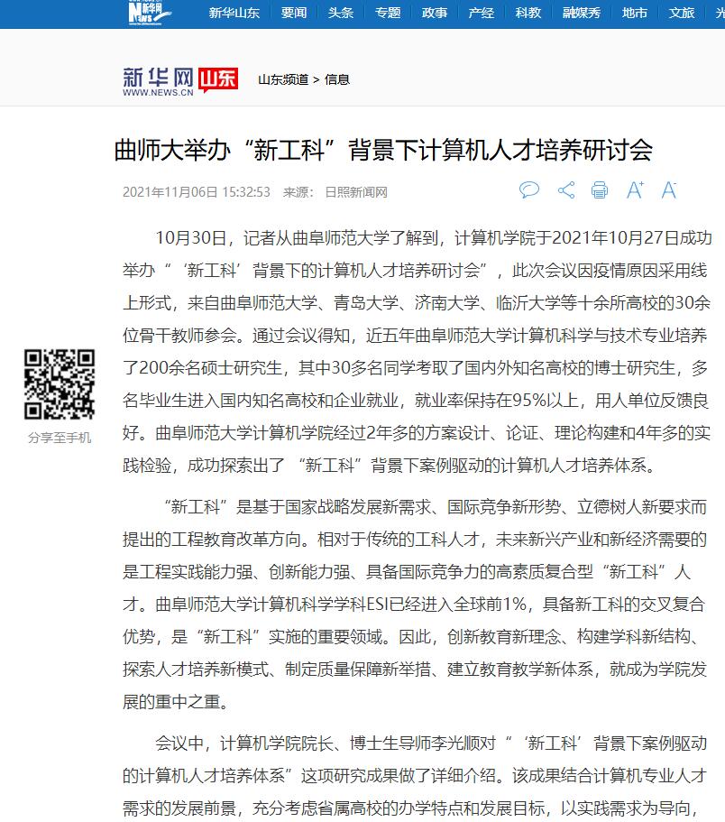【新华网】曲师大举办“新工科”背景下计算机人才培养研讨会