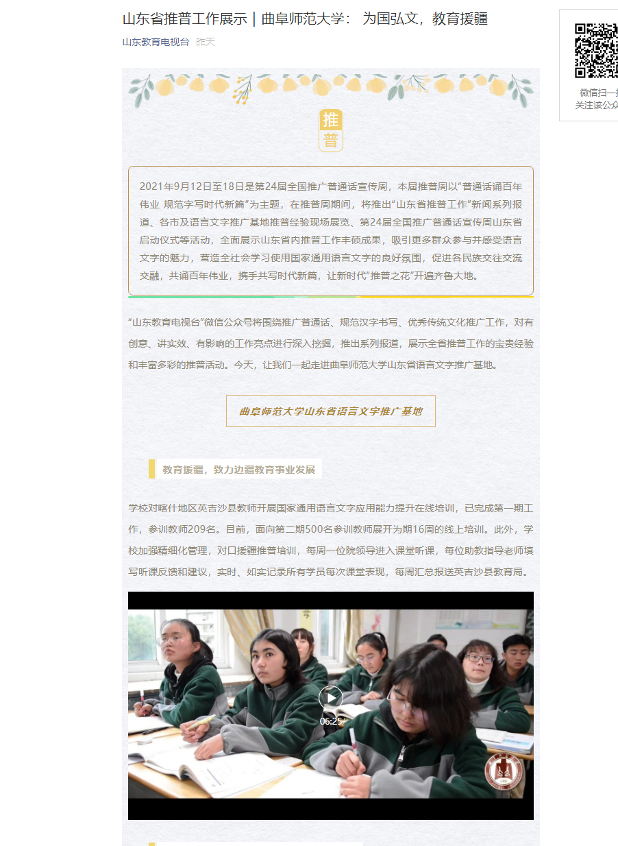 【山东教育卫视】亚搏集团官网(中国)官方网站: 为国弘文,教育援疆