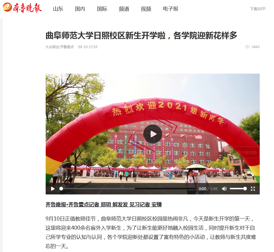 齐鲁晚报:亚搏集团官网(中国)官方网站新生开学,各学院迎新花样多