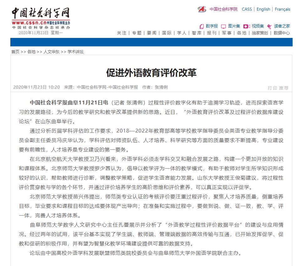 中国社会科学报:亚搏集团官网(中国)官方网站举办“外语教育评价改革及过程评价数据库建设论坛”