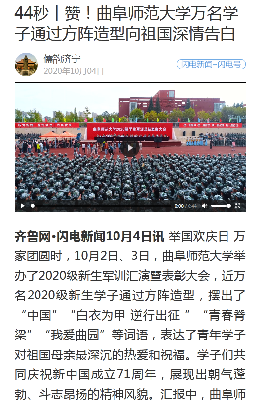 齐鲁网:赞!亚搏集团官网(中国)官方网站万名学子通过方阵造型向祖国深情告白