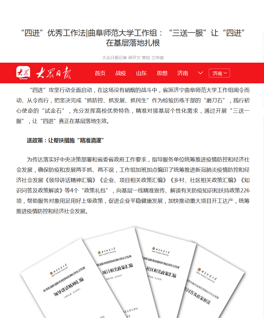 大众日报:亚搏集团官网(中国)官方网站工作组“三送一服”让“四进”在基层落地扎根